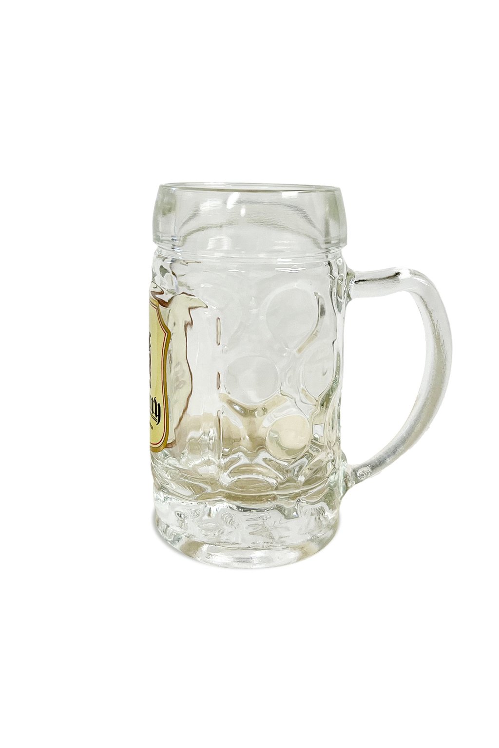 Pivní třetinka s uchem. Pevné poctivé sklo. Buclatý tvar.