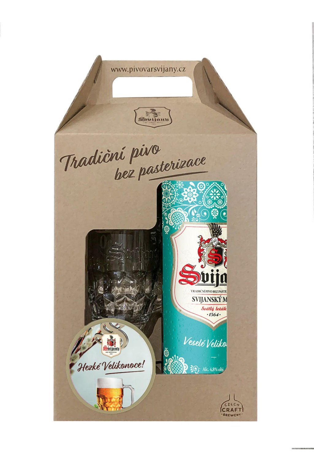 Krásná dárková krabice s naším exkluzivním půllitrem a 2l plechovkou nejen pro chlapy se Svijanským Mázem 11 %.